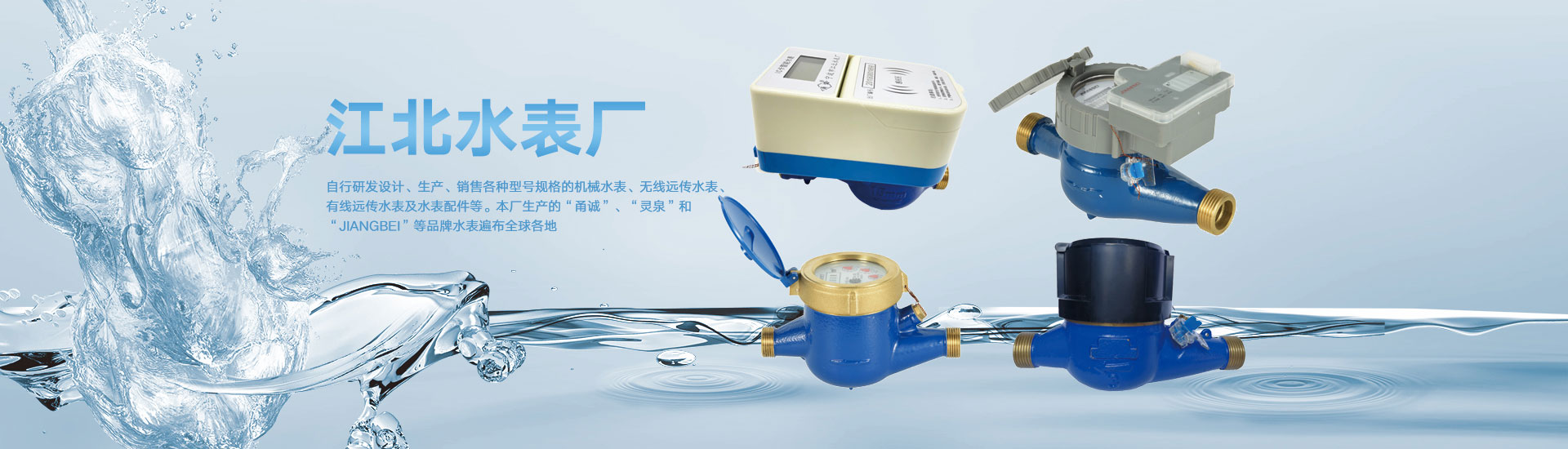 寧波市江北水表廠成立于1995年,自主研發(fā)設(shè)計(jì)、生產(chǎn)和銷(xiāo)售各種型號(hào)規(guī)格的機(jī)械水表、智能水表及相關(guān)配件等,生產(chǎn)的“甬誠(chéng)”、“靈泉”和“JIANGBEI”品牌水表遍布全球各地。本廠地處寧波市江北工業(yè)園區(qū),水、陸、空交通便捷,廠房占地面積達(dá)3600平方米,具有年產(chǎn)100萬(wàn)只水表及180萬(wàn)套水表機(jī)芯的生產(chǎn)能力。經(jīng)營(yíng)的主要產(chǎn)品有:Lora/NB-IoT物聯(lián)網(wǎng)水表、無(wú)線遠(yuǎn)傳閥控水表、光電直讀遠(yuǎn)傳水表(可帶閥控)、IC卡預(yù)付費(fèi)水表、可拆卸螺翼式水表、農(nóng)用灌溉水表、旋翼式水表(單流束水表、多流束水表)、直飲水表、容積水表等。